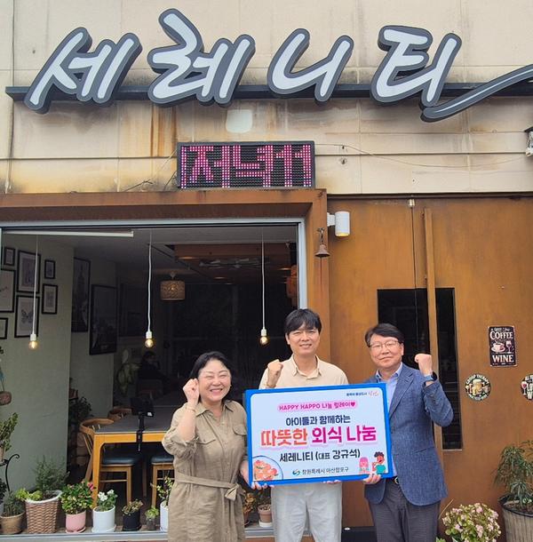 창원특례시 마산합포구(구청장 서호관)는 18일(목), 마산합포구 소재 파스타전문점 세레니티(대표 강규석)에서 “따뜻한 한끼, 행복한 외식 지원” 기탁식을 가졌다고 밝혔다.