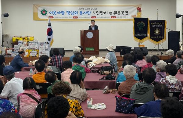 이웃사랑 청심회봉사당(단장 이기석)이 주최하는 이날 기념식에는 서호관 마산합포구청장을 비롯한 지역구 시의원, 관련 단체 노인 등 200여명이 참석해 노인복지의 의미를 함께 나누었다. 주요 행사 내용으로는 노인복지 유공자 표창, 내빈축사, 축하공연, 경품 추첨의 순서로 다채로운 행사가 펼쳐졌다.