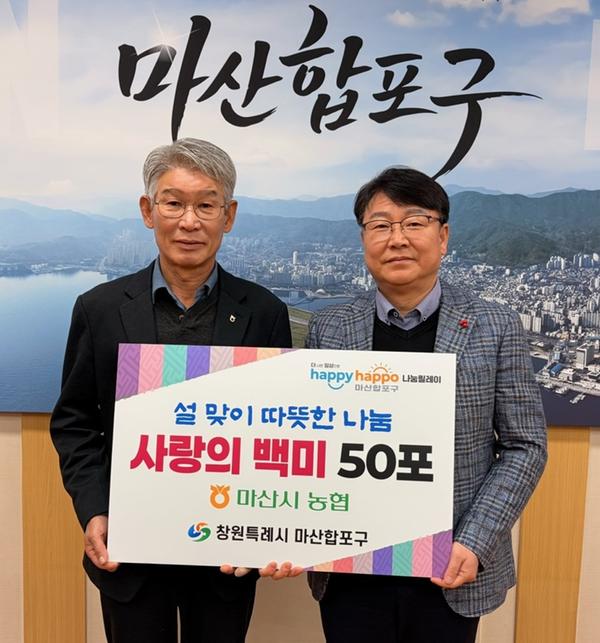 서호관 마산합포구청장은 “작은 나눔과 정성들이 모여 함께 사는 동네를 따뜻하게 만든다.” 며 “어려운 이웃들을 위해 나눔을 실천해주신 마산시농협과 주부대학동창회 회원님들께 깊이 감사드리며, 행정에서도 주민 모두가 즐거운 설 명절을 보내실 수 있도록 더욱 세심히 보살피겠다.”고 전했다.