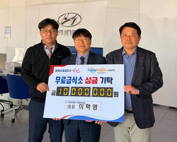 현대자동차 진동대리점 이학영 대표, 관내 무료급식소에 성금 1,000만 원 기탁