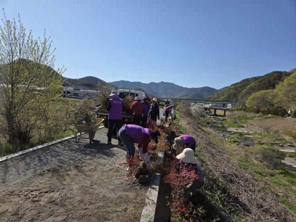 이번 사업은 4월 7일부터 8일까지 이틀간 진행되었으며, 진북면 인곡천 일대에 꽃댕강, 남천, 연산홍 총 3,600주를 748㎡의 면적에 식재하여 쾌적하고 아름다운 생활환경 조성을 목표로 했다.