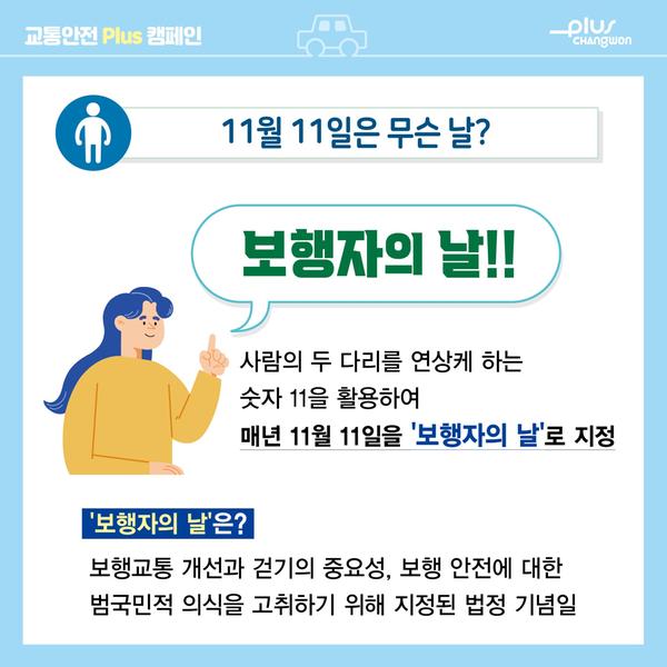 11월의 캠페인 주제는 '11월 11일, 보행자의 날'입니다.