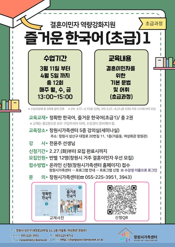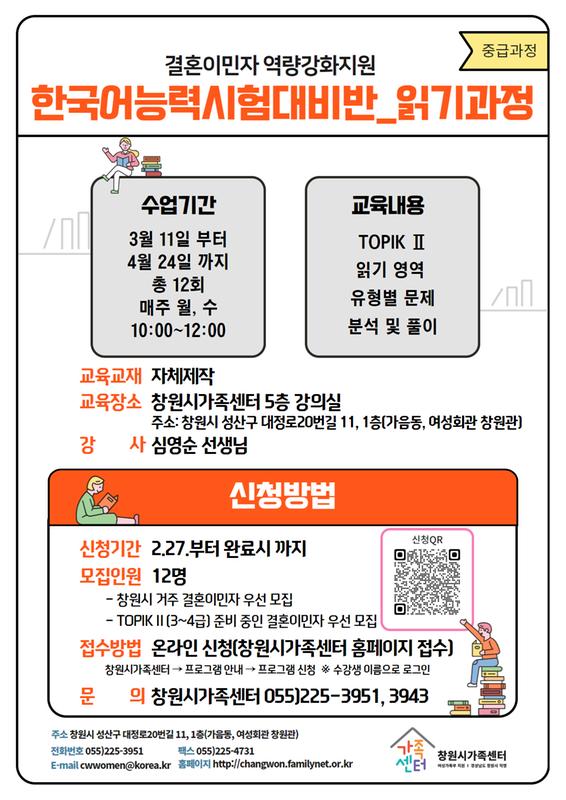 - 인원 : 반별 12명 (창원시 거주 결혼이민자 우선 모집)
