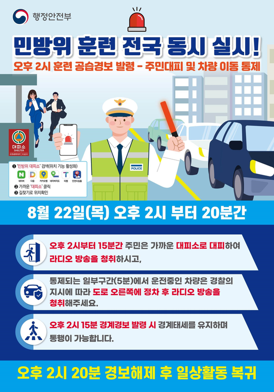 ◎ 을지연습 연계 공습 대비 민방위 훈련