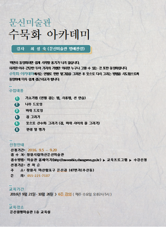 접수방법 : 문신미술관 홈페이지 → 교육프로그램 → 수강신청