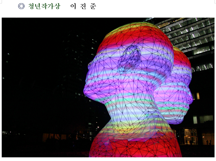 장 소 : 문신미술관 야외전시장 주최/주관 : 창원시 / 문신미술상운영위원회 문신 청년작가상 수상자 설치 조각가 / 이 진 준