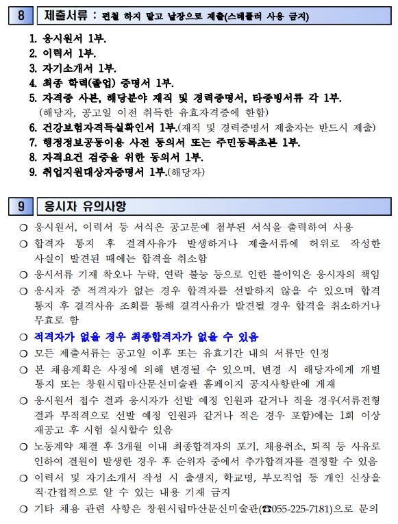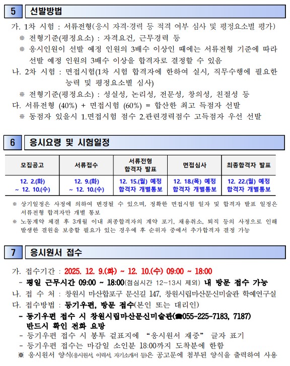 [공지] 창원시립마산문신미술관 학예보조 기간제노동자 채용공고